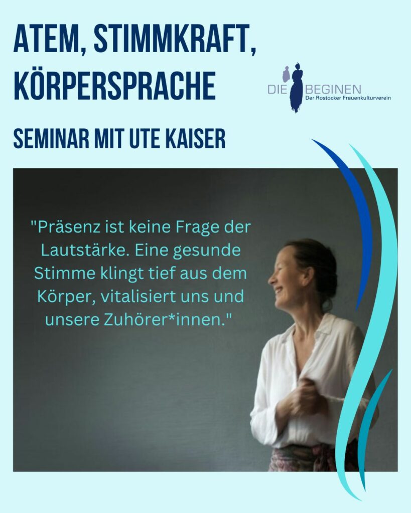 In diesem Grundlagenkurs vermittelt die Schauspielerin Ute Kaiser ihr Wissen aus über 20 Jahren Stimm – und Atemtraining.